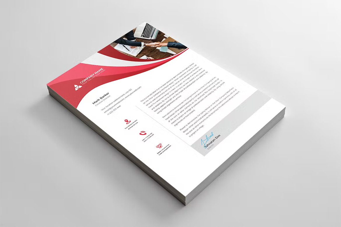 The letterhead usually includes a business’s logo, name, address, and contact information such as phone or fax number, email address, and company website URL. Ideal for sending letters and communicating to clients or third parties
